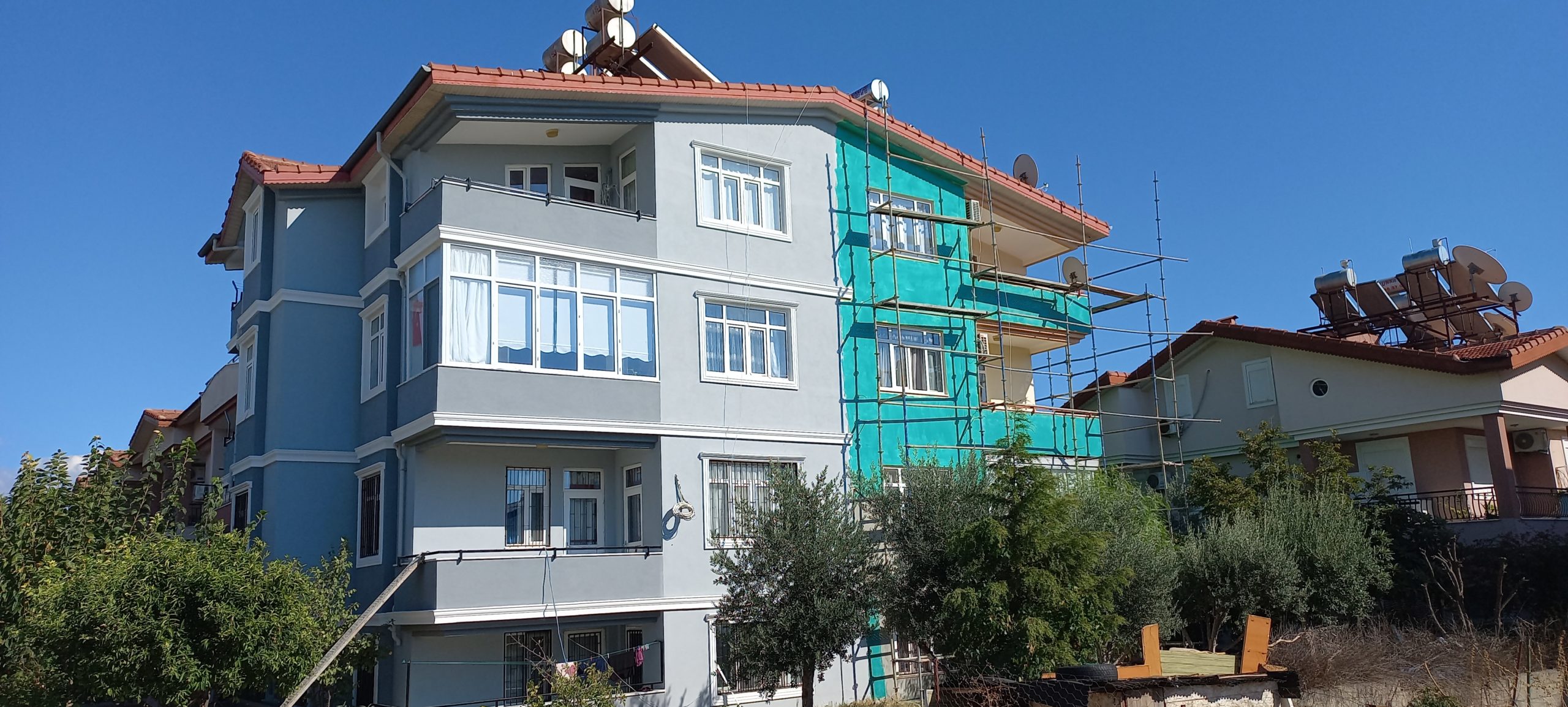 Boya uygulaması dışında pencere söve ve kat kesmeleri ile bina etrafı zemini kazılarak taban suyuna karşı strafor paneller ve izolasyon harcı ile yalıtım sağlandı.